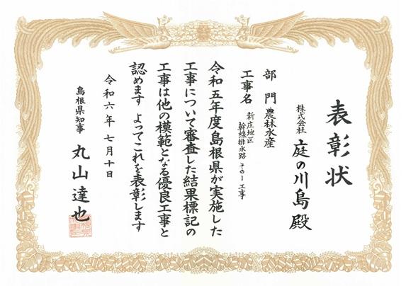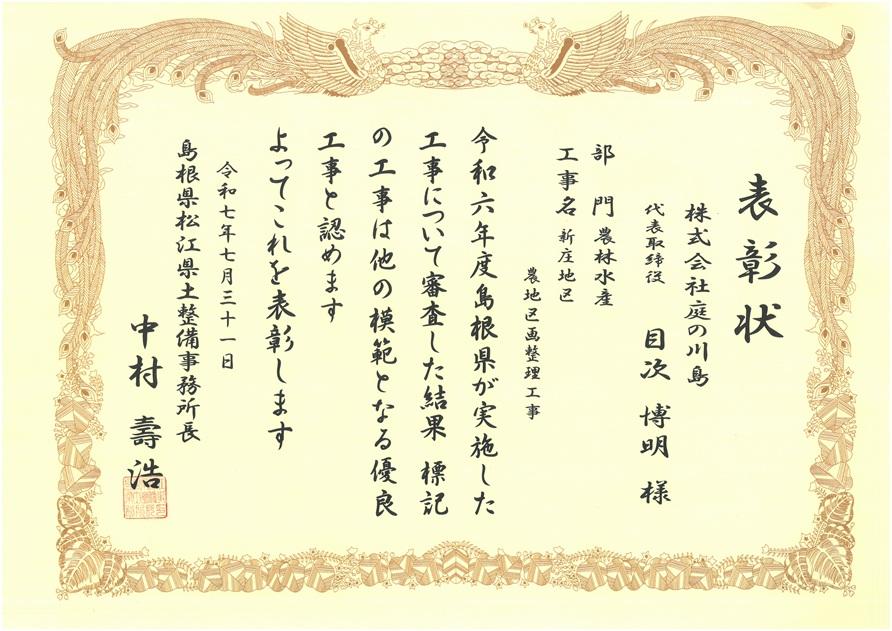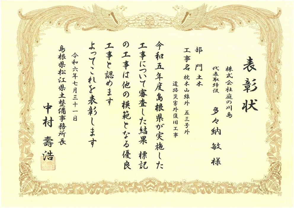 平成24年度 島根県松江県土整備事務所長表彰・林野庁長官表彰